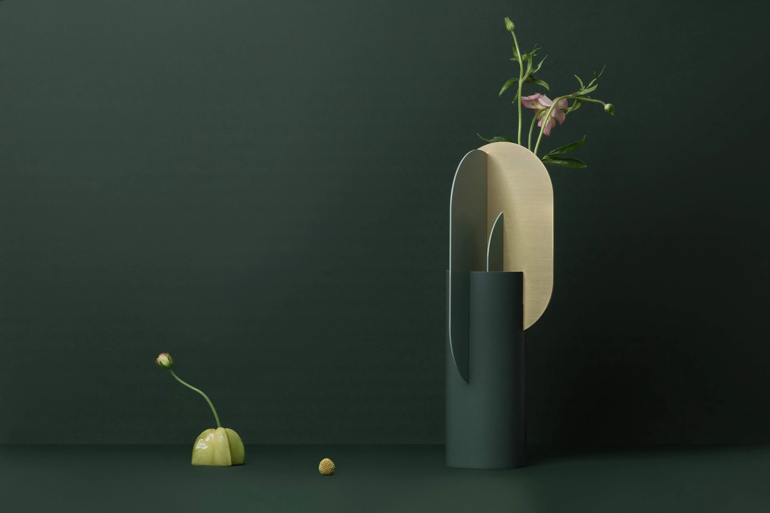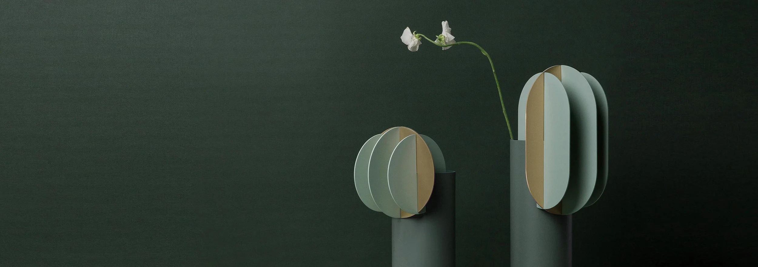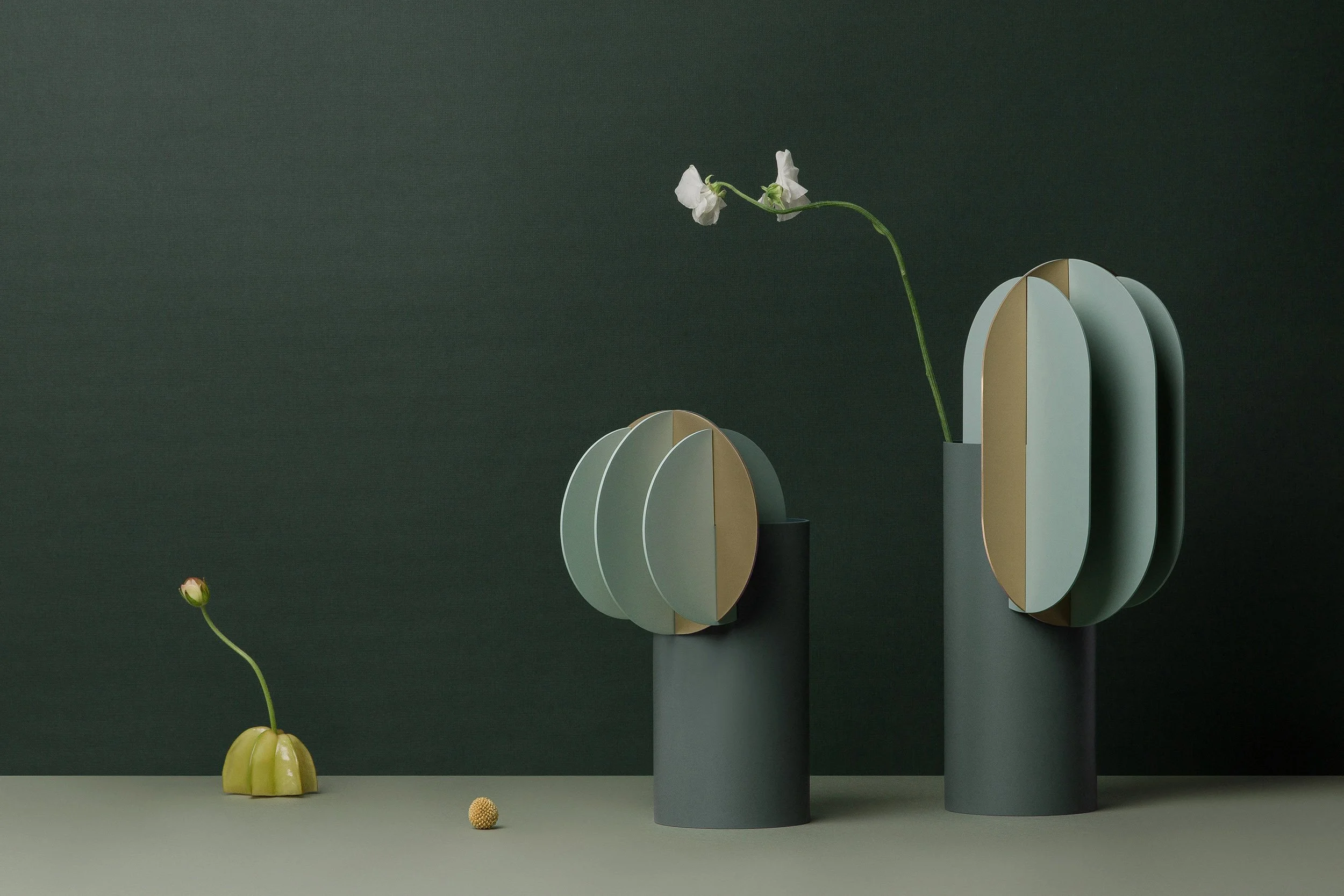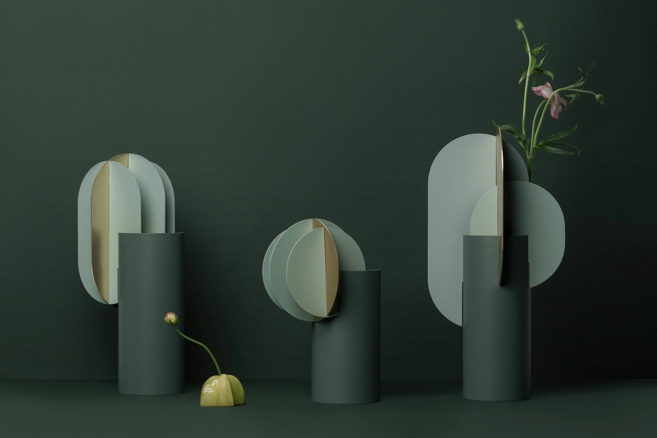 SUPREMATIC VASES IN BRASS AND PAINTED STEEL