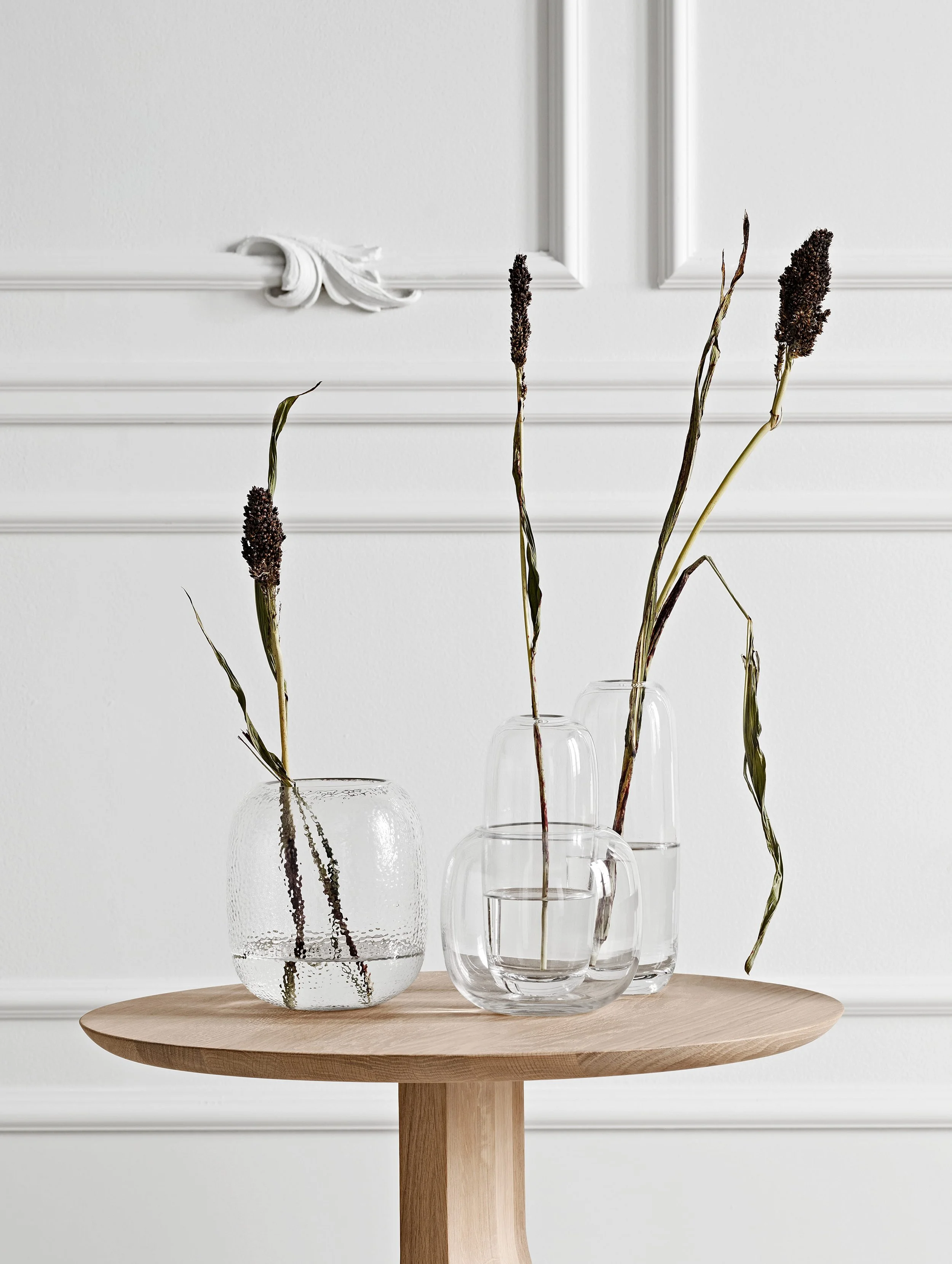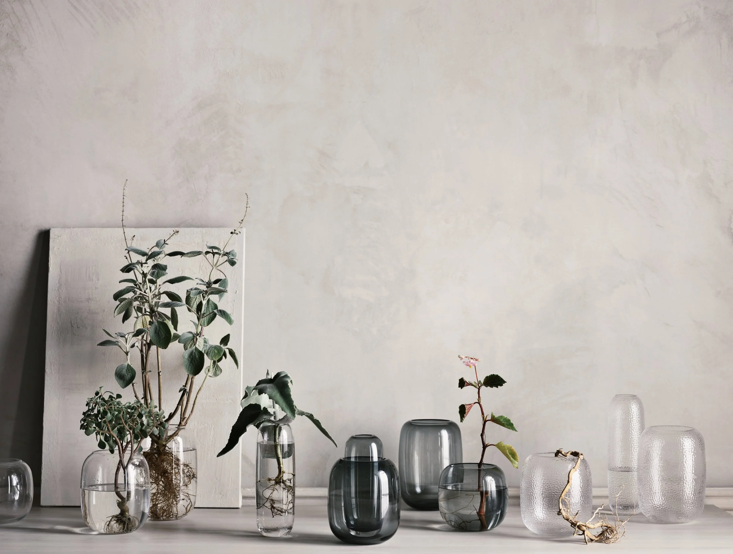 The Una vases reflect the beautiful simplicity of glass. The elegant, oval vases come in different sizes and shapes, designed to fit all types of bouquets and to be combined and arranged in playful compositions.