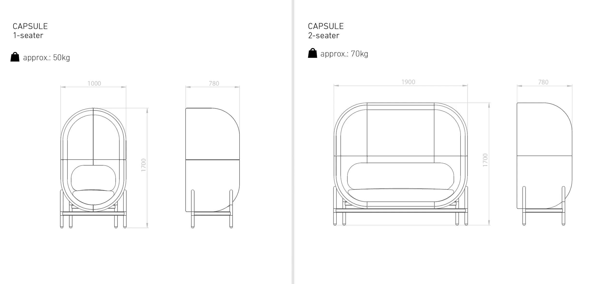 The Capsule soft seating collection offers a stylish solution to the increasing need for concentration and privacy in office environments. In an atmosphere of security, comfort, and innovation, you can make phone calls or read without being disturbed. Capsule creates privacy without being completely cut off from the surroundings.
