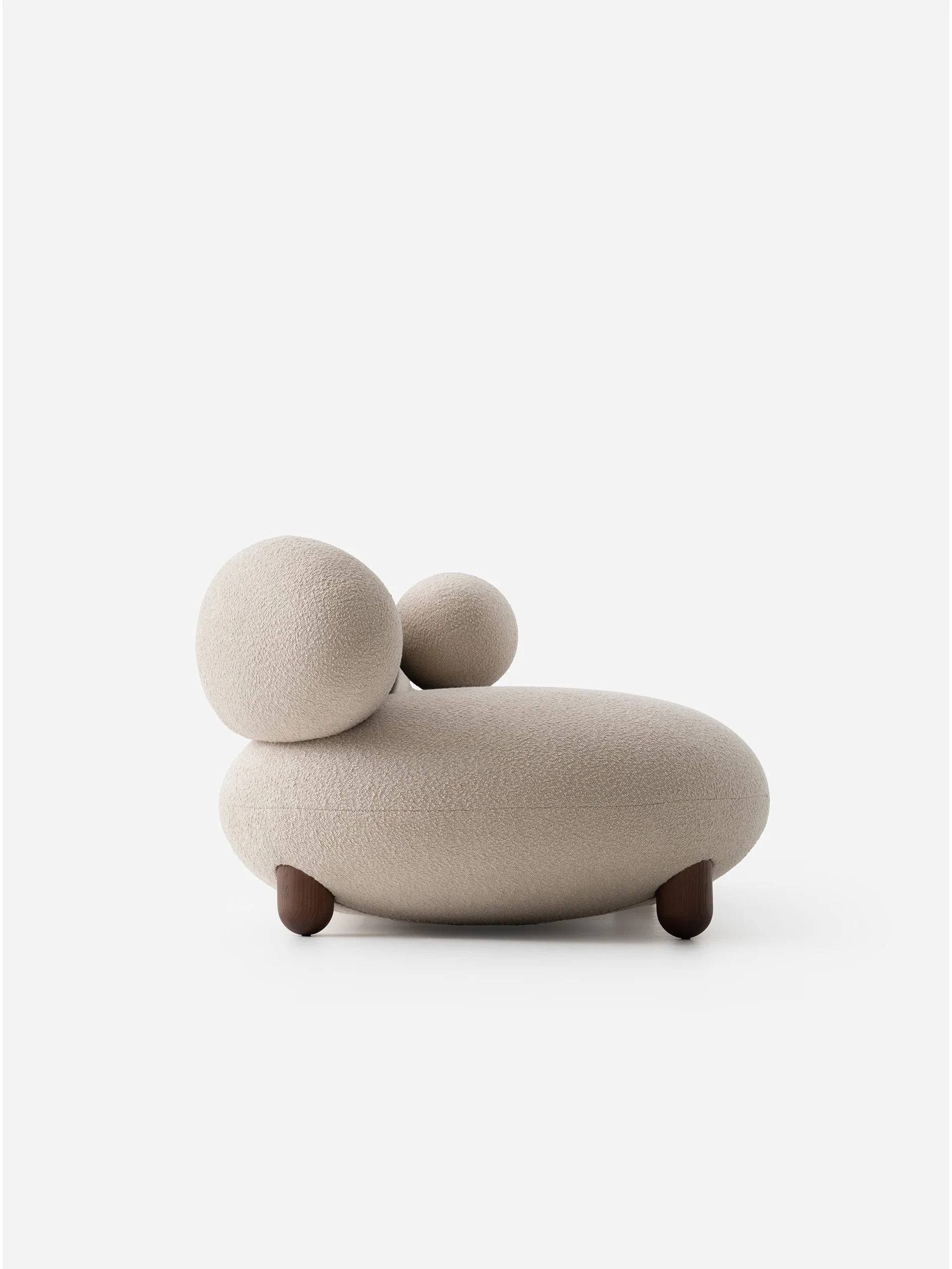Sculptural in form and refined in finish, the Flock Sofa pairs bold geometry with tactile softness. Its elliptical backrest and matching cushion echo the sofa's rounded silhouette, while solid ash legs add contrast and warmth.