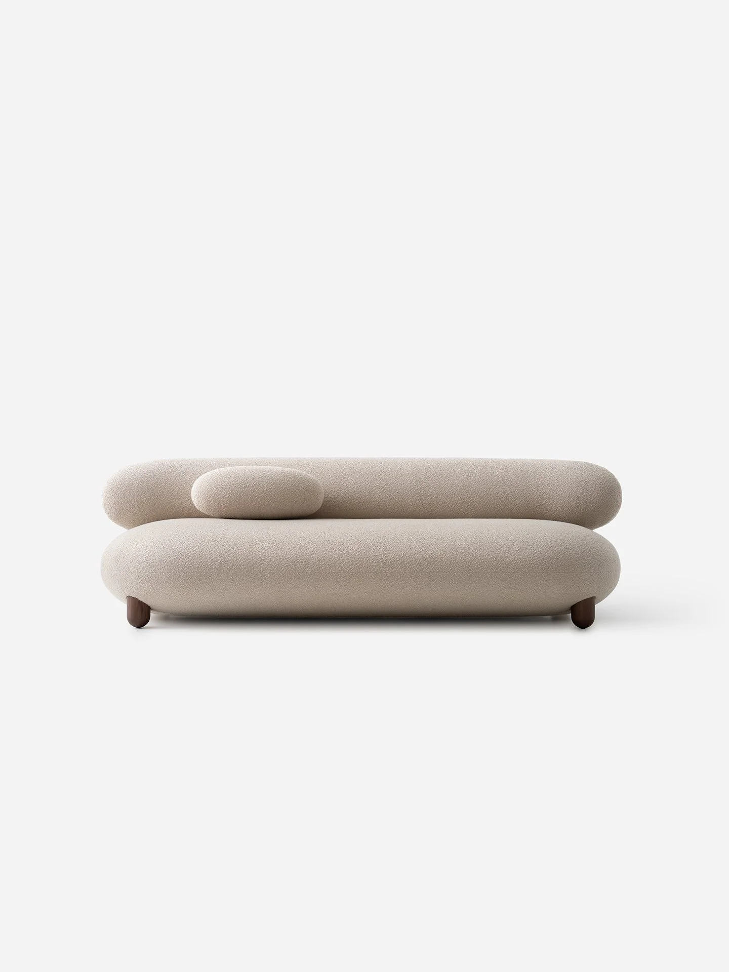 The Flock sofa offers a cosy, deep lounge seat complemented by a matching elliptical bolster cushion which adds an extra layer of softness and doubles as an armrest for relaxed lounging. Thoughtfully designed, the angled backrest offers ergonomic support for various postures and body types, making it equally suited for reclining or sitting upright.