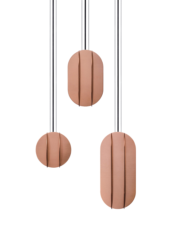 "El" lamps are available in copper, brass, and stainless steel. The variety of metal options encourages the creation of unique lighting setups.
