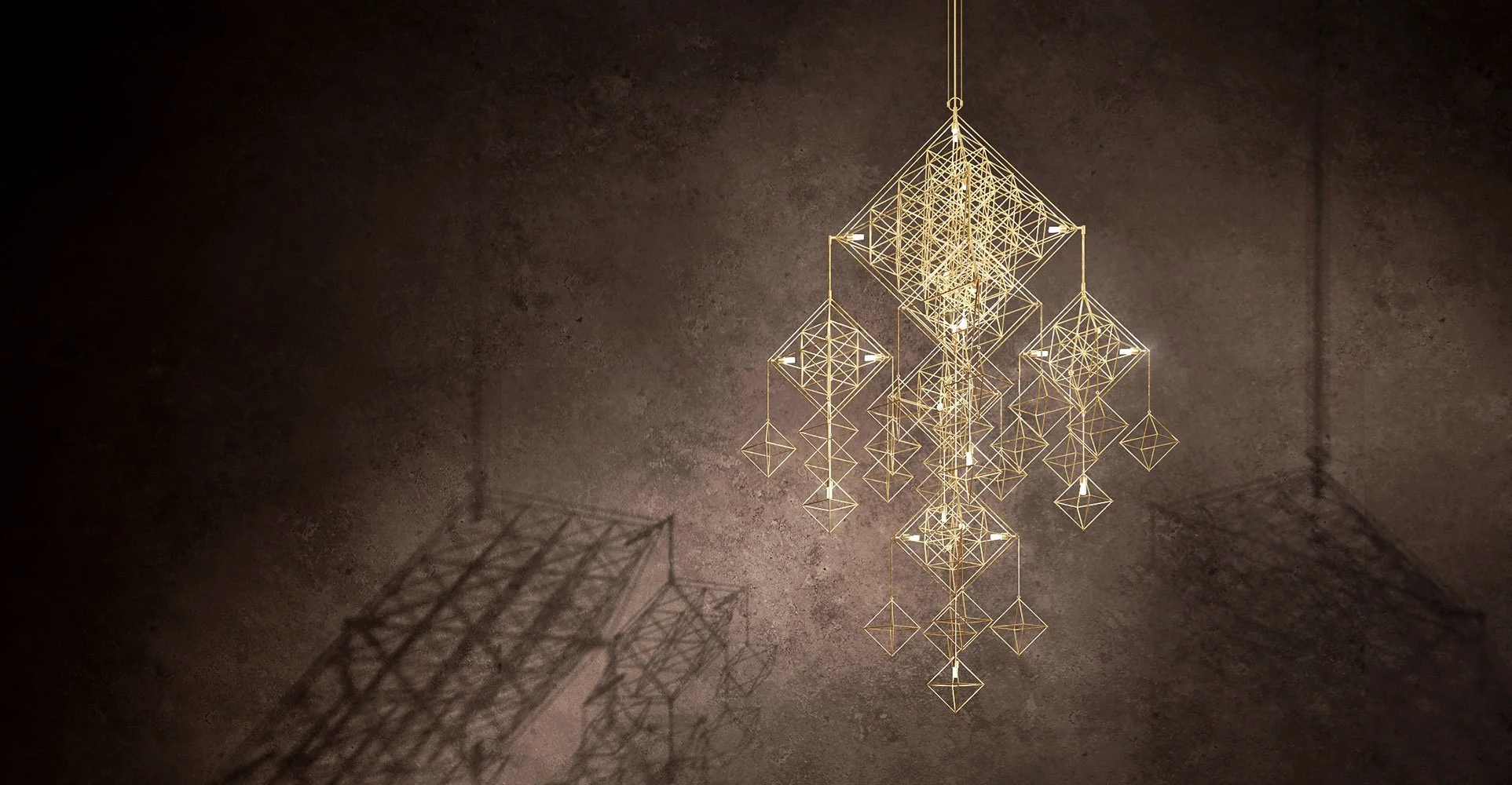 Its delicate gilt structure encases tiny diamond lights, and the architectural design of this new collection of pendants brings a touch of jewellery to your home, a sparkling ornament to hang up as you would a talisman.