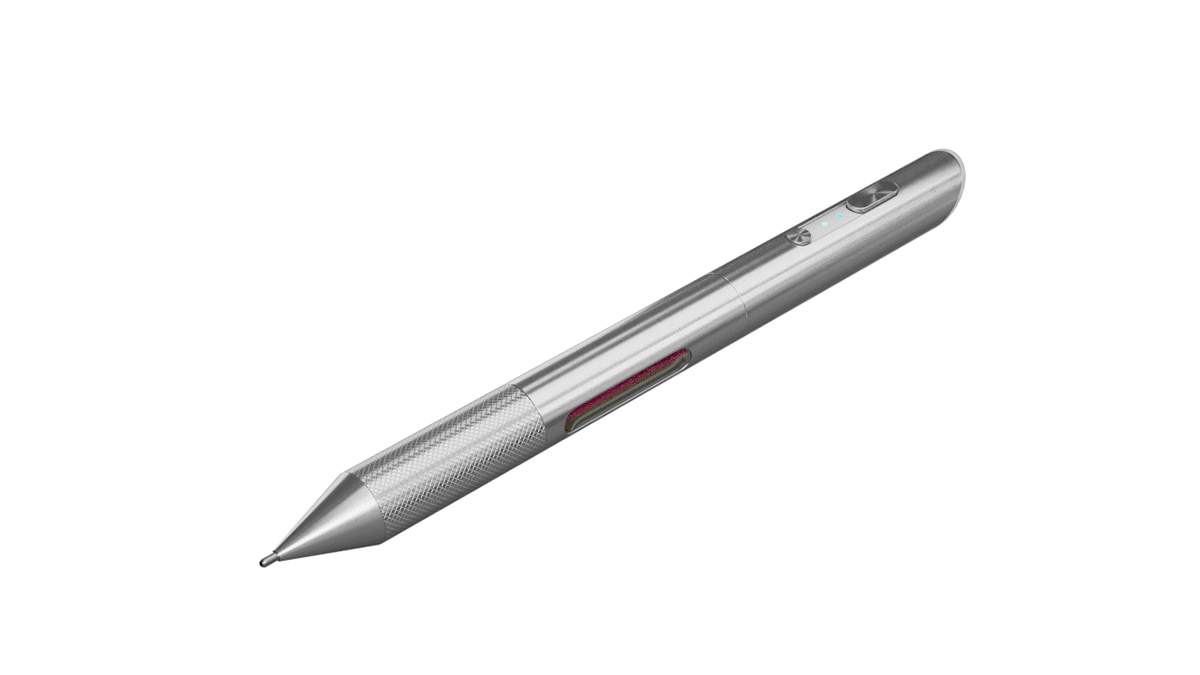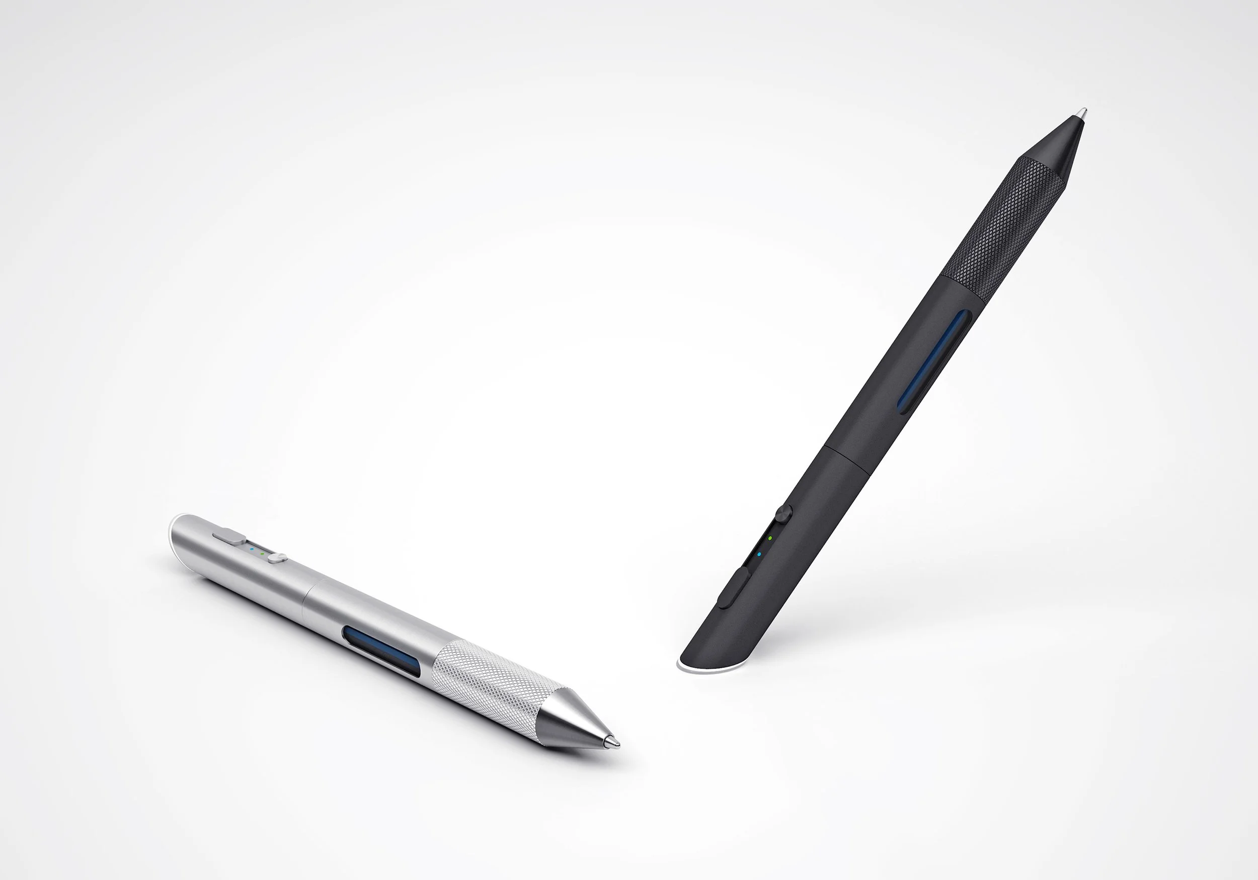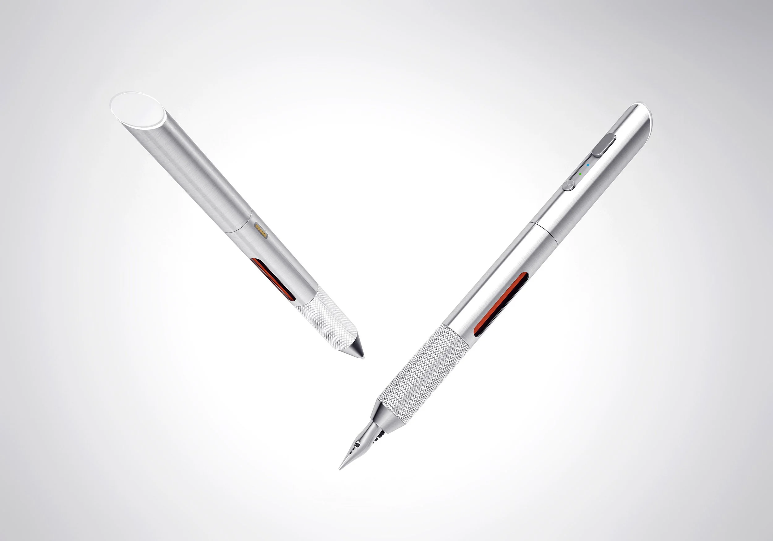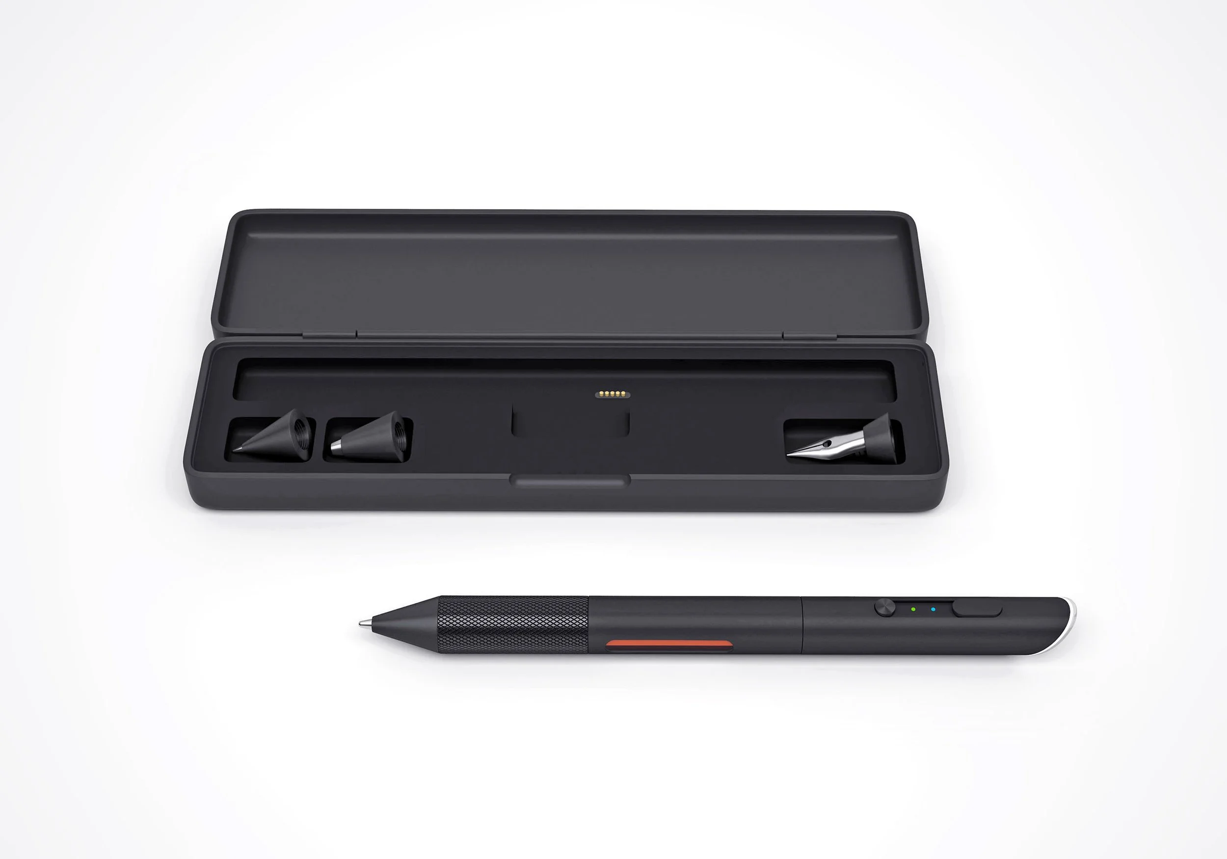 The pen is packaged in a pouch-docking station that allows you to charge it during storage!